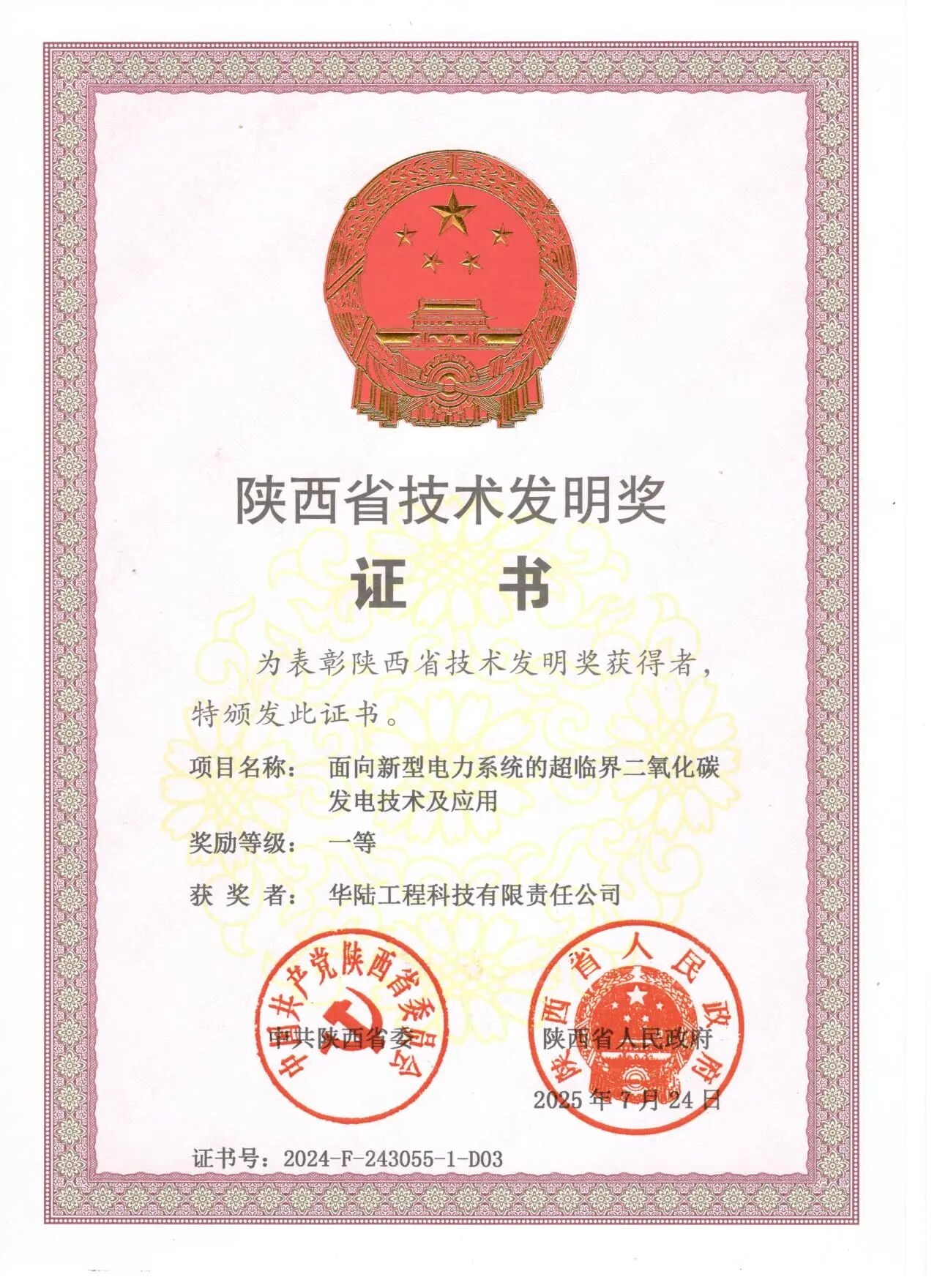 中國化學(xué)華陸公司斬獲陜西省技術(shù)發(fā)明獎(jiǎng)一等獎(jiǎng)!